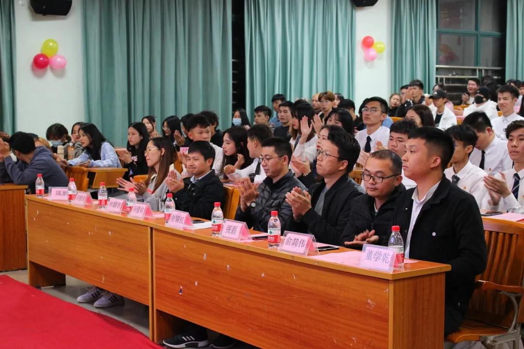 我院于12月3日晚19:00在博c101举行第十届团总支学生会换届大会,莅临现场的有:校团委副书记谢锦权老师、党总支副书记陈莹镔老师、党总支组织委员林炯智老师、团总支书记董学乾老师、以及辅导员张磊老师、莫桂遇老师、俞其伟老师和陈歌老师。